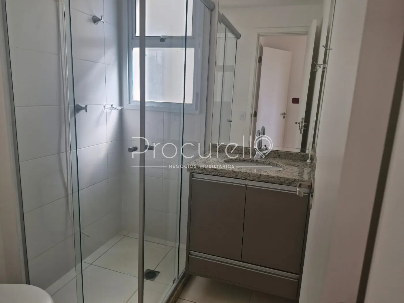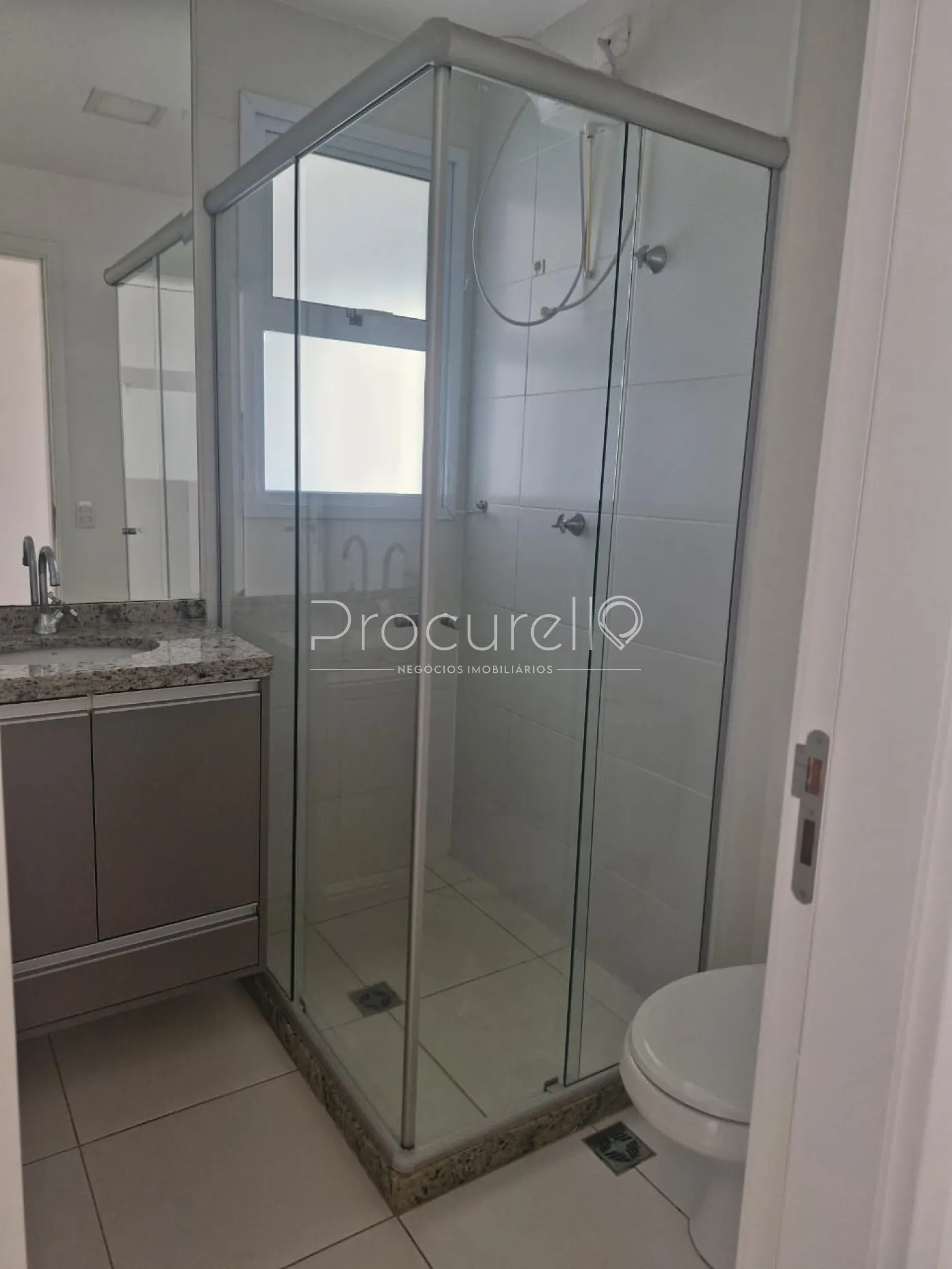 2 banheiros (suíte e social), ambos com gabinetes, espelhos e box em vidro