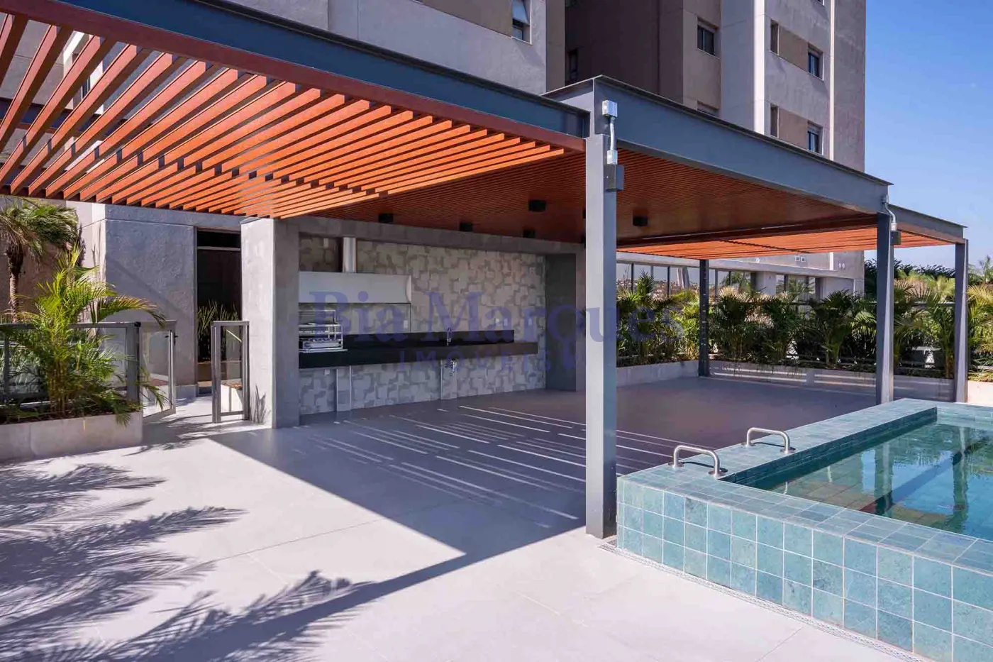 - Lazer com área de churrasco e piscina privativa.