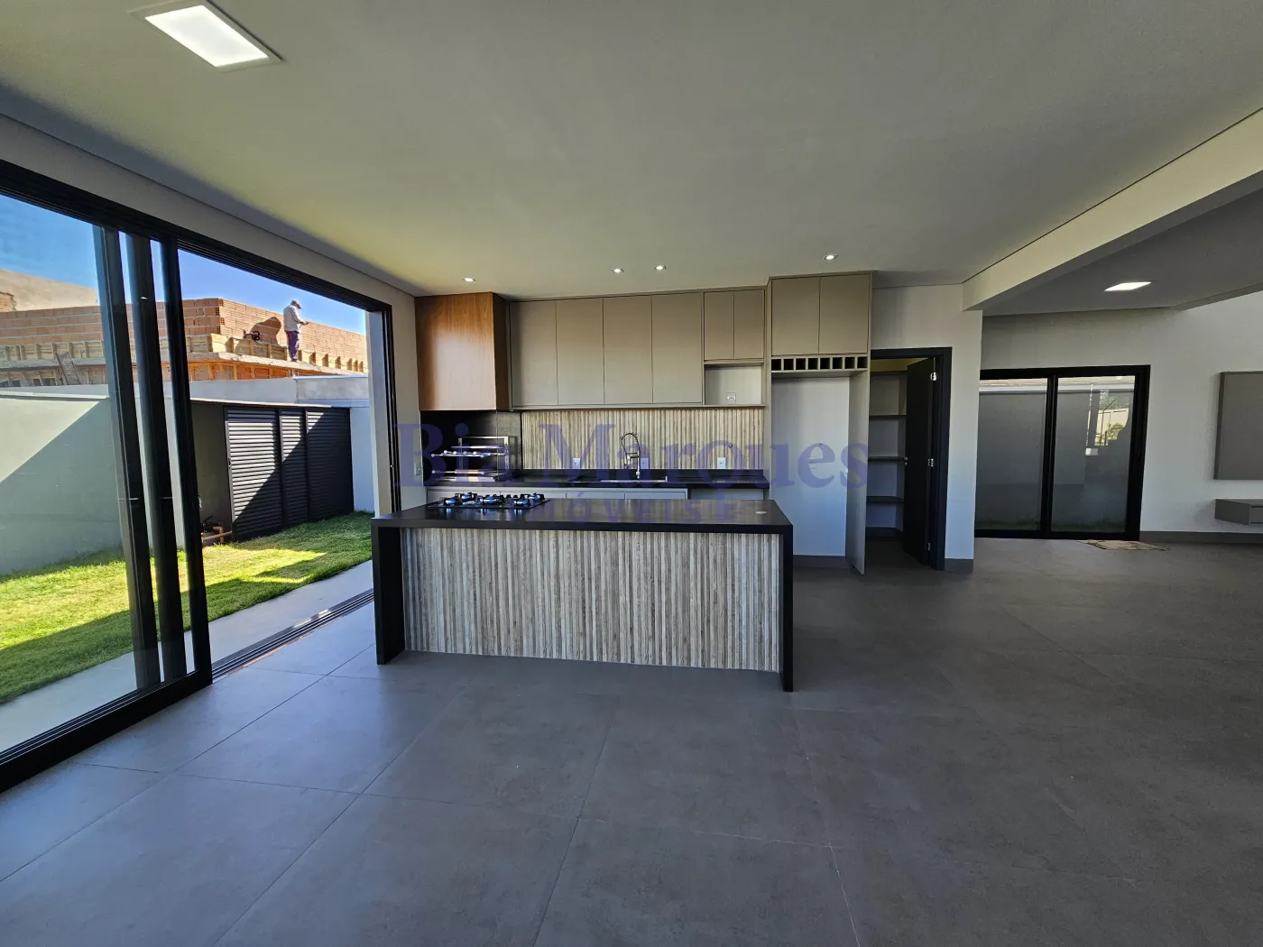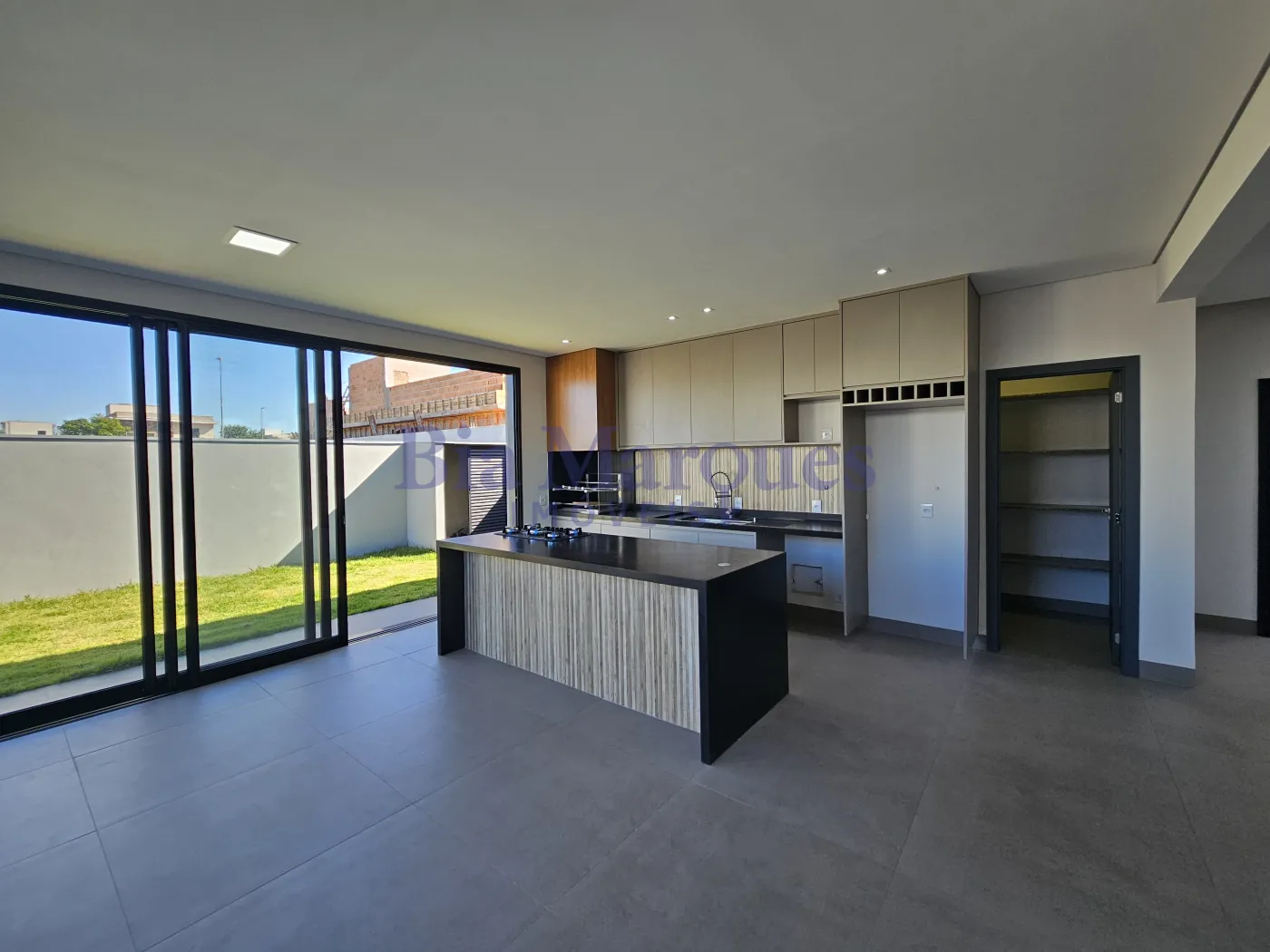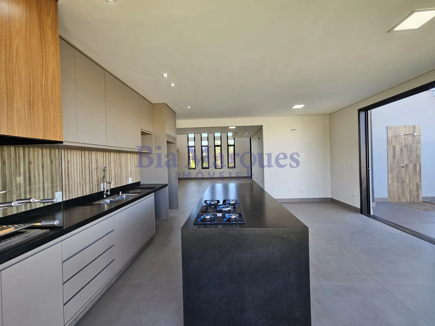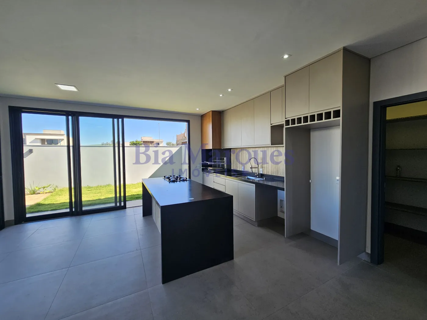 - Cozinha com ar condicionado, armários planejados, balcão com cooktop coifa e luminárias;
