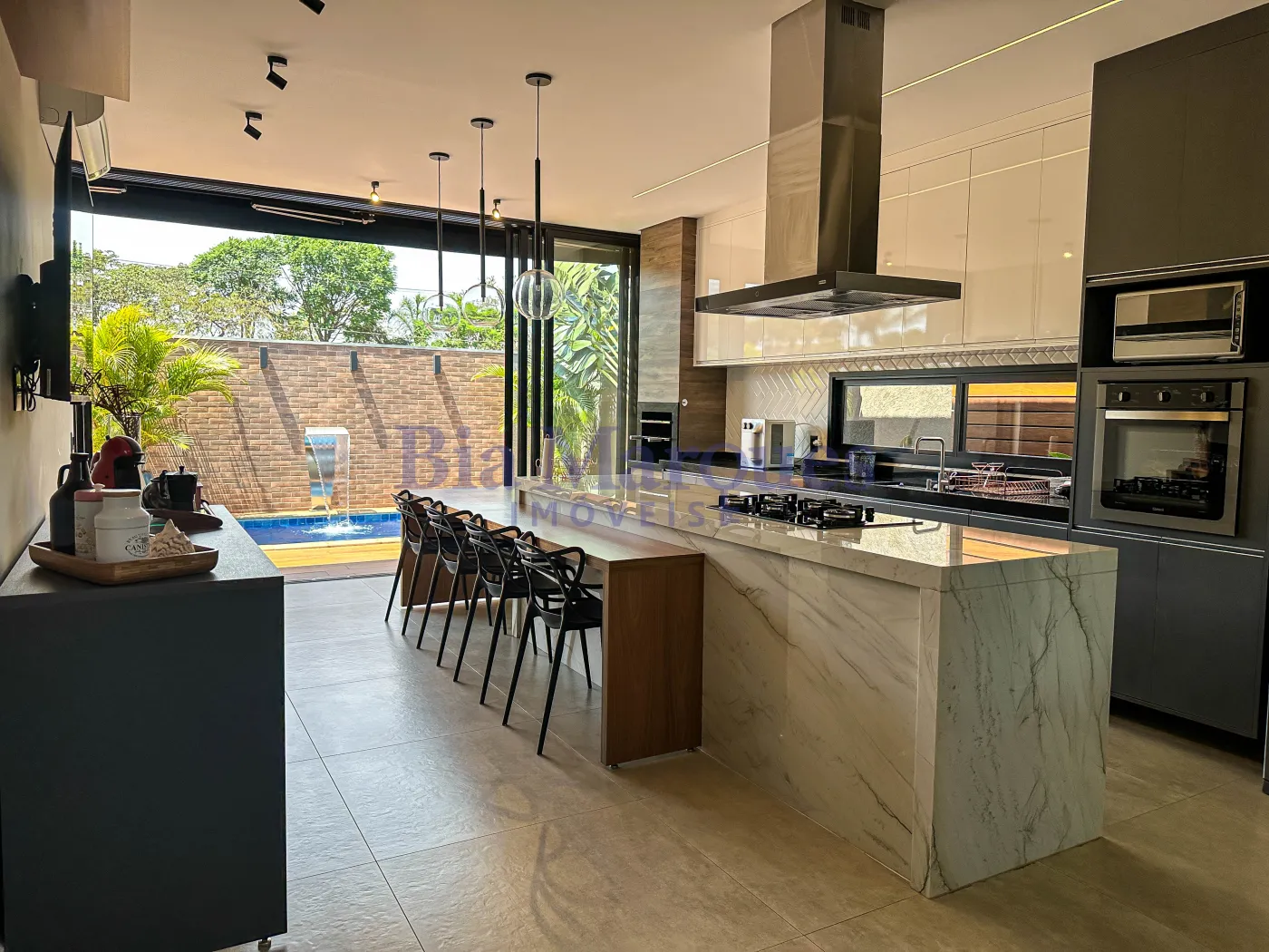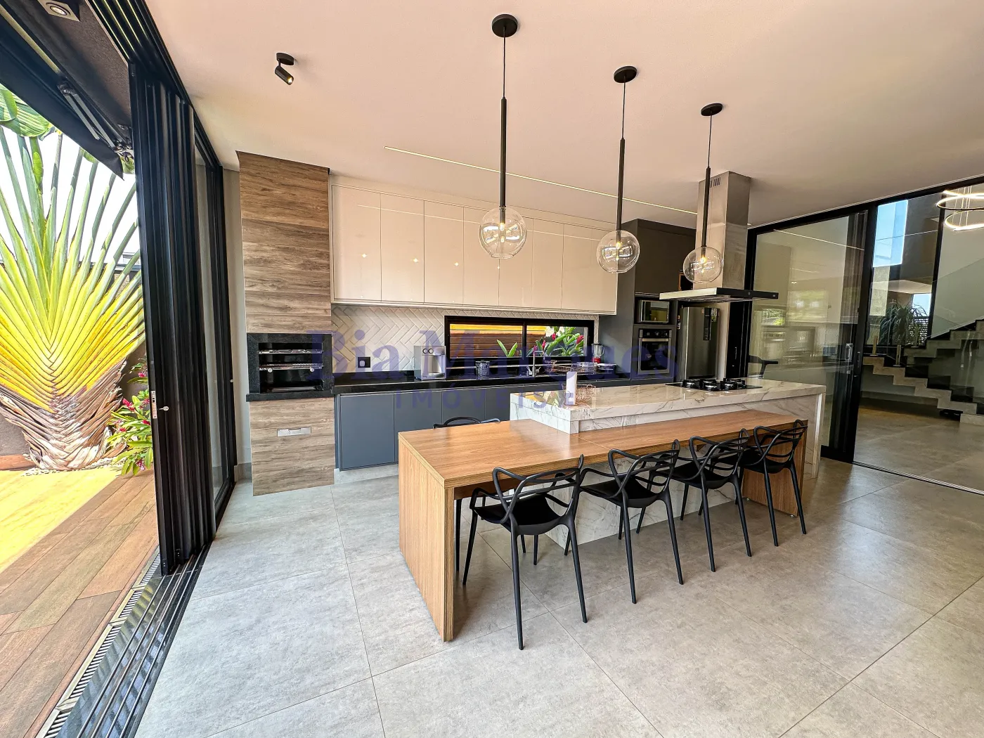 - Varanda gourmet com churrasqueira a gás em inox e coifa em inox;