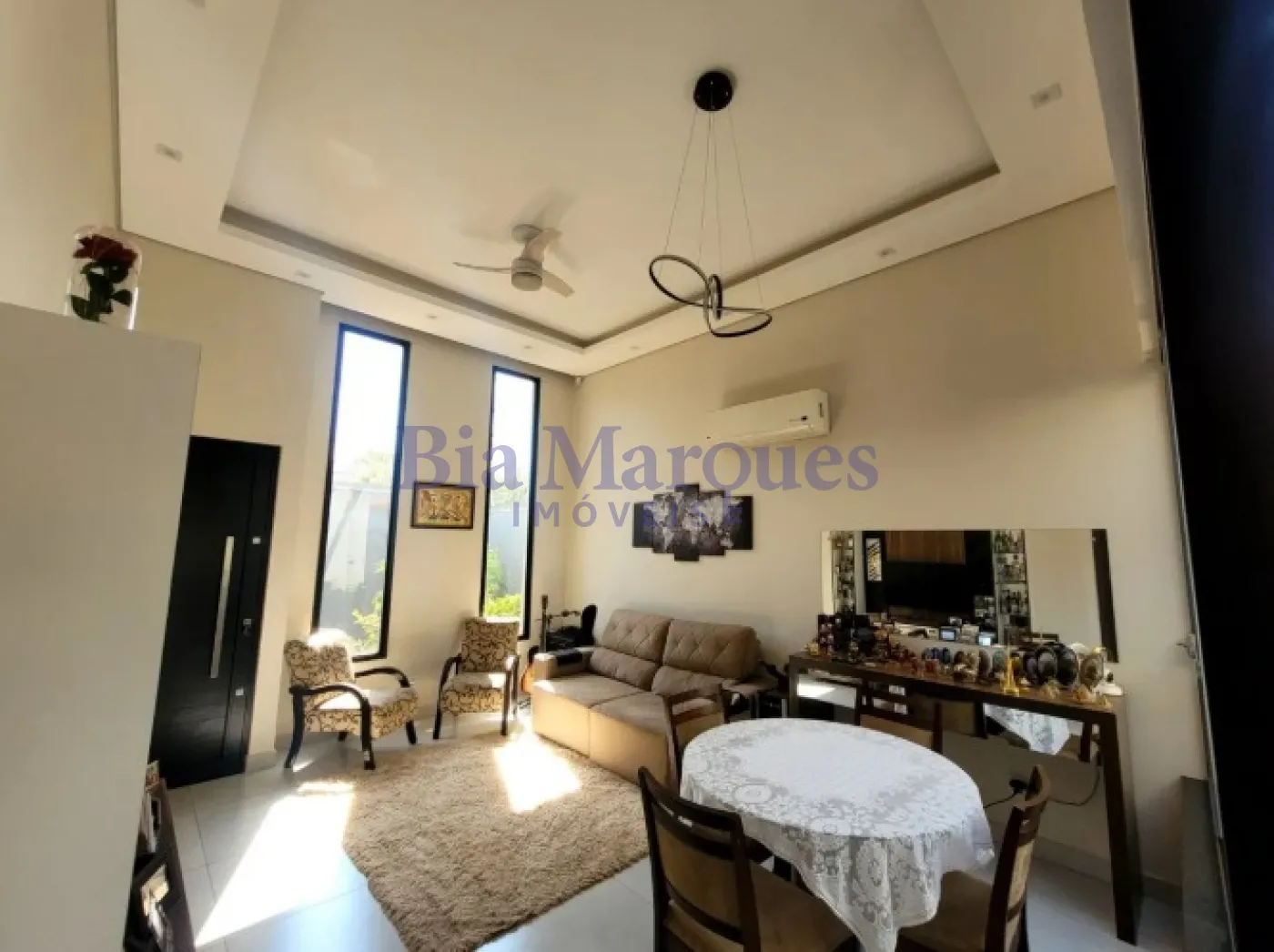 - Sala com pé direito alto e sanca invertida e iluminação em led, ventilador com controle remoto e Ar Condicionado 22 mil btus.
